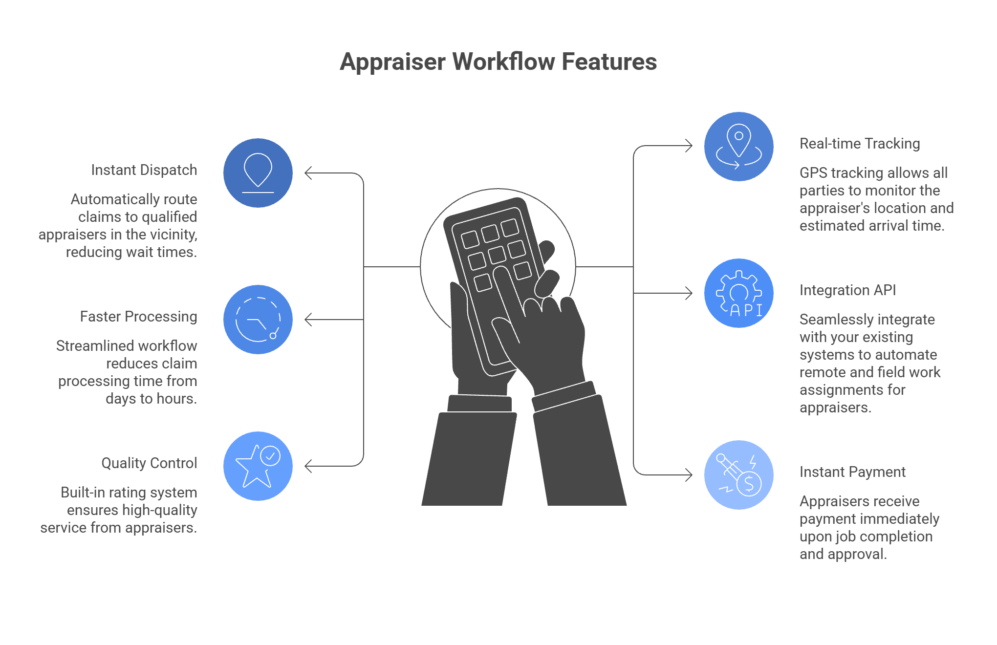 The system instantly routes the request to qualified appraisers in the area.